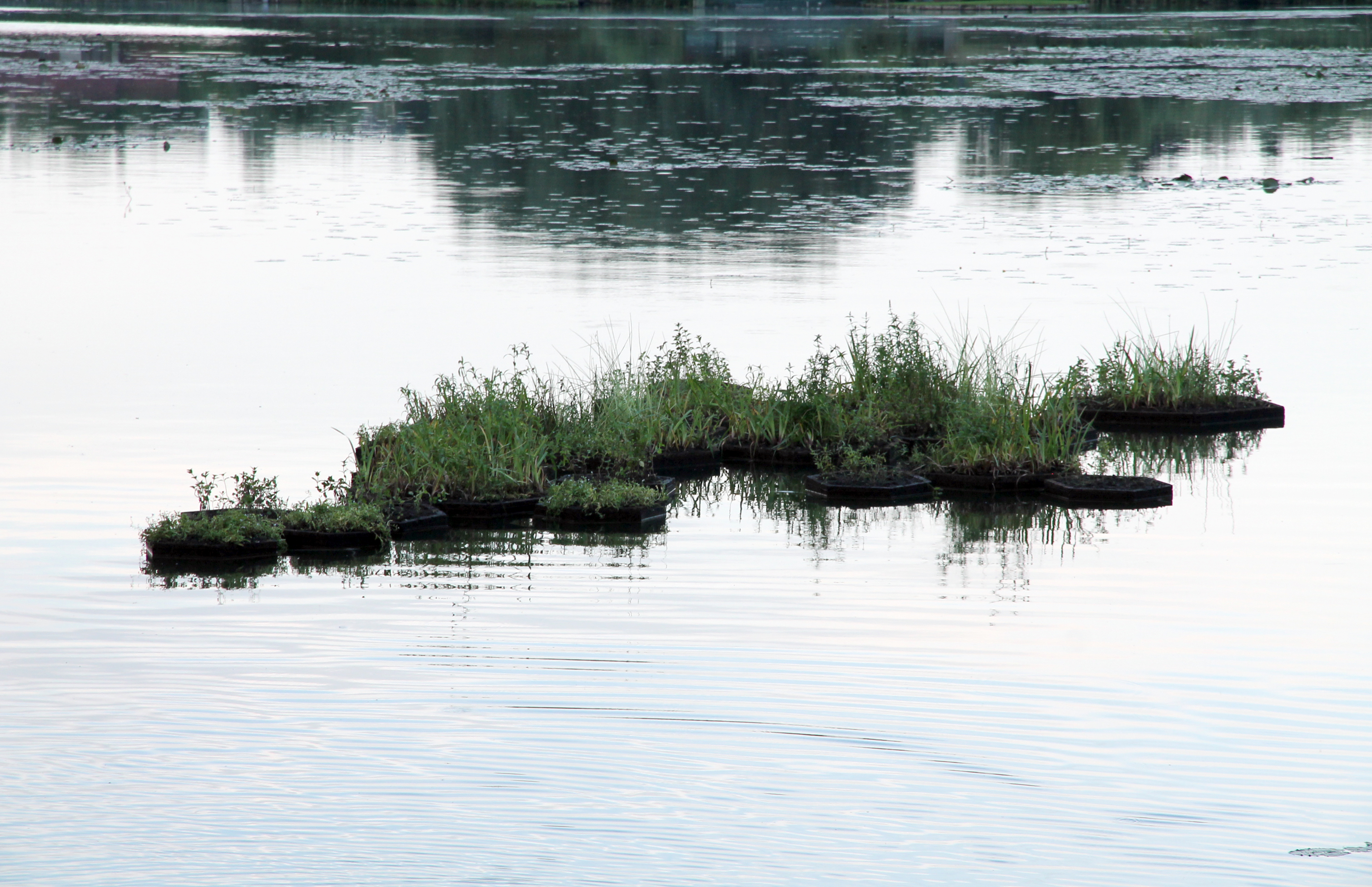 Landscape installation ‘Symbios-living together’ was built this week by Giedre Paliukaityte and Joana Quintas. Being a part of ‘Art, Villes & Paysage | Art, Cities & Landscape’ project it offers an opportunity to find new relations between natural and man-made environments and have a closer experience of sensitive surroundings. Located on water a network of 24 hexagonal modules supports native aquatic planting. Recycled bottles and cork provide buoyancy for timber structure holding the soil.