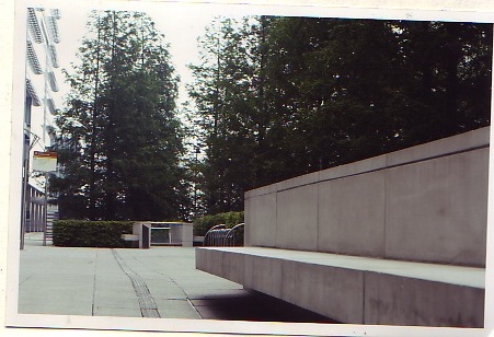 Going through the park the colours are kept at a minimum (grey and green) which allows the eye to flow and follow the waves in the wall structure and detail. Stones are layered to create the waviness. The simplicity of the planting (grasses on the wall tops) and beech hedges reflect the simplicity of the architecture, both marry and don’t collide. The entrance to the shopping mall is low and small. It is not very grand and seems to peep out at you as you walk through the wavy, winding path to the park.