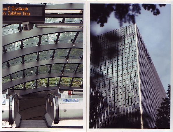 As you exit Canary Wharf tube station straight away you are hit with the beautiful lush green of new spring growth from the surrounding beech hedges. Leaves blowing softly in the breeze. Above the Redwoods rise into the sky followed by rolling, wavy natural stone walls flowing into a green oasis. The next thing you start to look up and see the high rise buildings. The contrast of hard lined structures and hedges that have been left slightly unmaintained just enough to blow in the wind is delightful. The architecture is over poweringly exciting and the green blowing leaves soften the overall experience.